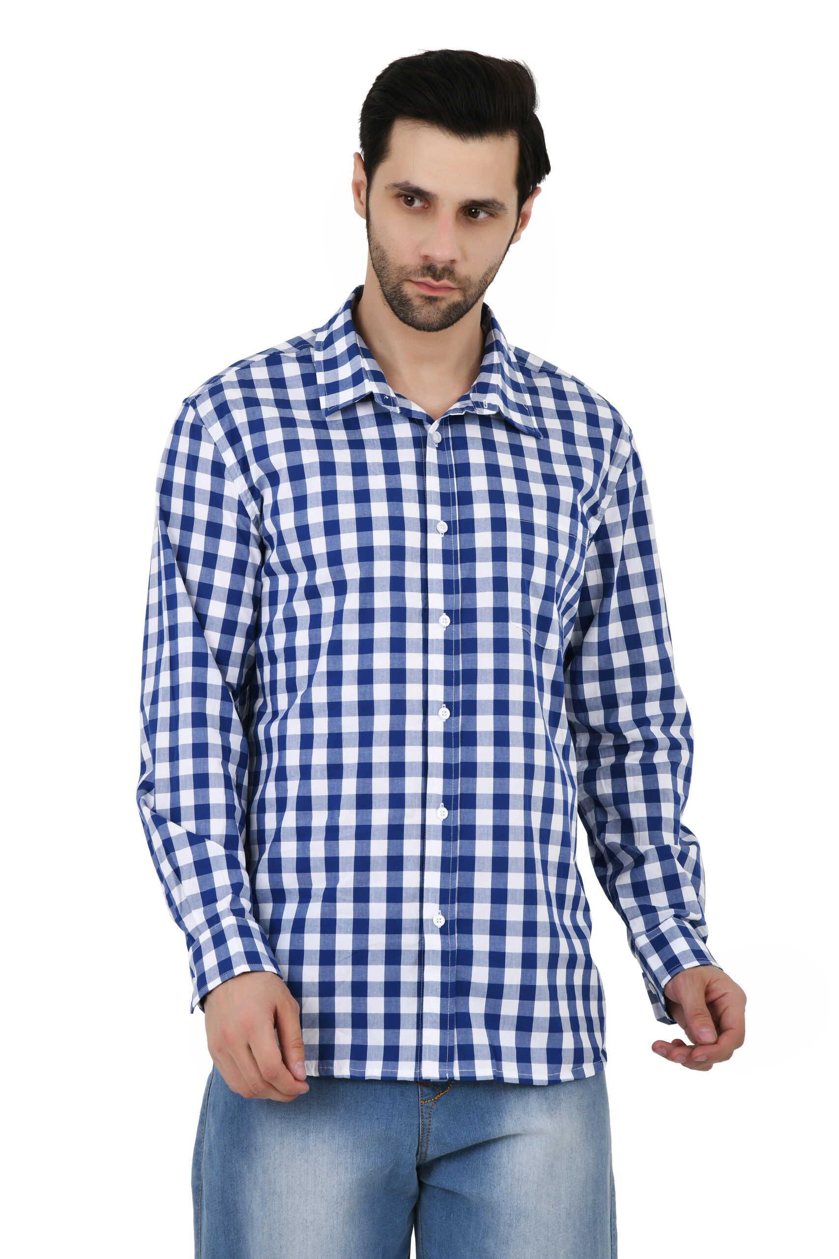 Made from high-quality, soft cotton blend fabric for maximum comfort. Features a classic check pattern, full-button closure, and neatly tailored cuffs. Available in regular and relaxed fits with durable stitching for long-lasting wear. -