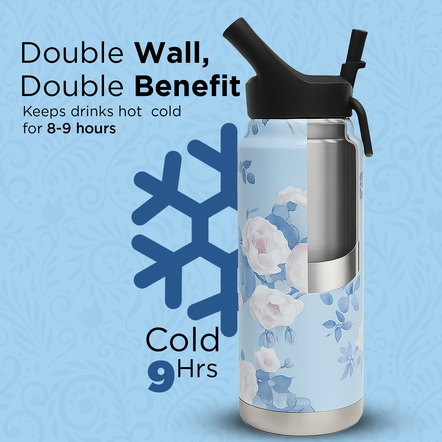 🌸 Premium Floral Print – Trendy and eye-catching floral design makes this water bottle perfect for school, office, and gifting.
