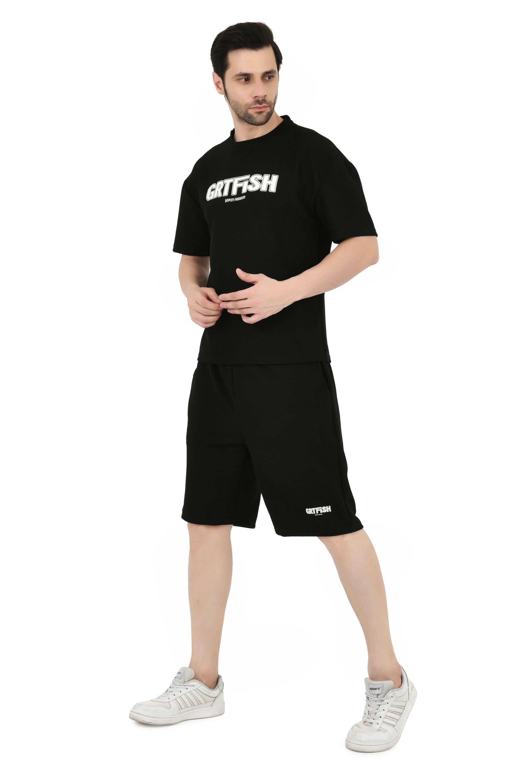 Made with lightweight, high-quality fabric that feels soft on the skin. Features a classic round-neck tee and matching shorts with an adjustable waistband for a flexible, comfortable fit.