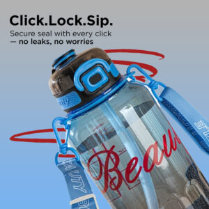 Stylish Beauty 1500ml Water Bottle – Motivational Markings, Straw, & Shoulder Strap for Active Lifestyles Blue