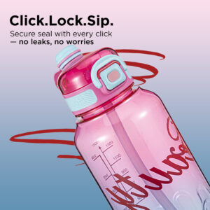 Stylish Beauty 1500ml Water Bottle – Motivational Markings, Straw, & Shoulder Strap for Active Lifestyles Pink